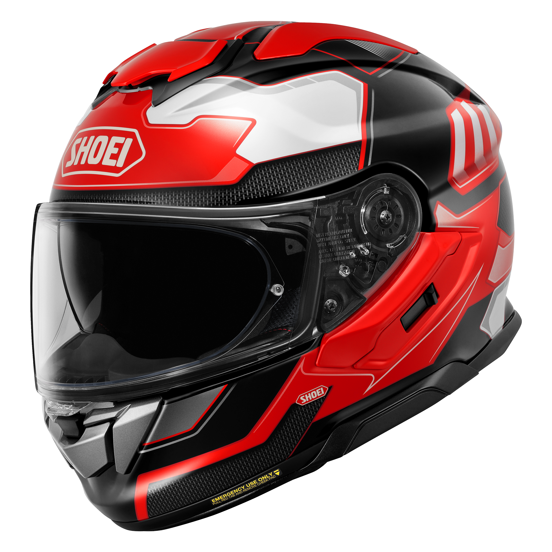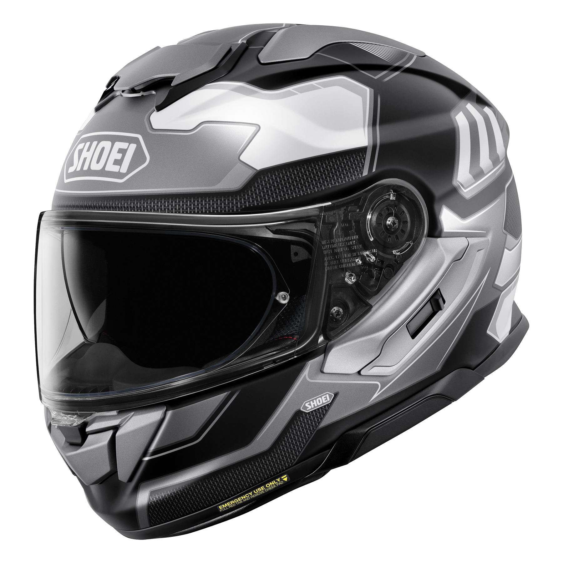 Shoei GT-AIR 3 har stötdämpande skal i AIM, tre skalsorlekar. EPS-inredning i olika densiteter. Förbättrade kindkuddar med Noise Isolator® för maximal brusreducering.
